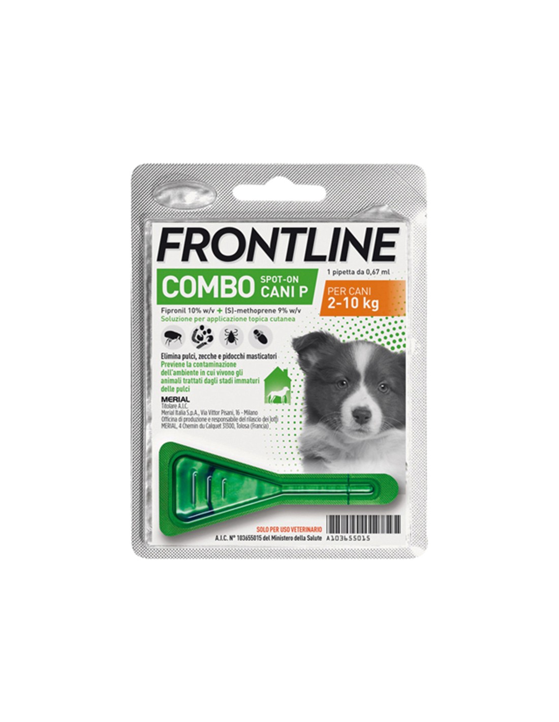 Frontline combo spot-on antiparasitic treatment for small dogs, 2-10 kg, against fleas, ticks and lice. With Fipronil(S)-methoprene Duration up to 4 weeks.
