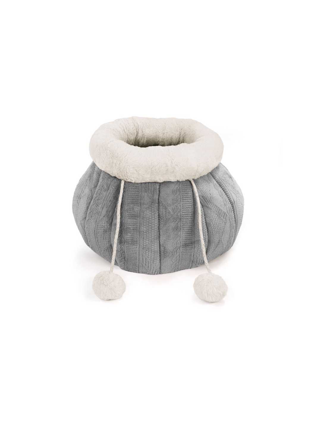PonPon kennel for small dogs and cats with its enveloping nest shape and silky feel guarantee a relaxing and cuddly sleep. Made from a high-quality outer fabric, it features an elegant pattern reminiscent of wool, perfect for adding style to your home. The two decorative pom-poms complete the design, adding a refined touch. The inner cushion is double-sided, removable and easy to clean, offering versatility and practicality. The non-slip base ensures stability even on smooth surfaces. Size Ø35 x 23h cm