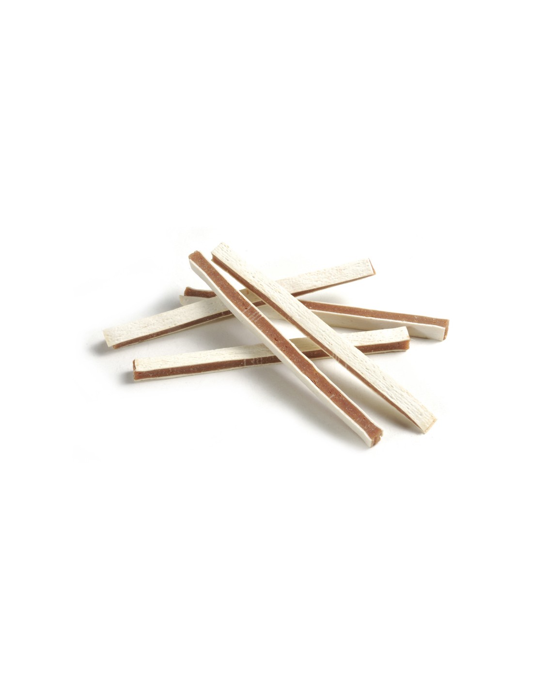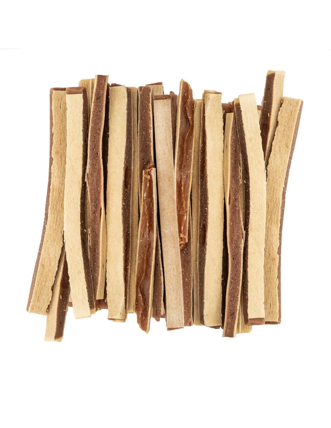 ProIn single or double animal protein dog snacks are made with high biological value proteins from premium meats such as duck, chicken, tuna, cod, rabbit and lamb. These highly digestible protein sources support the development and maintenance of strong, healthy muscles, while also promoting recovery after physical activity. The recipe is rounded off with a selection of superfoods such as blueberries, spinach, apple, salmon and chia seeds, foods naturally rich in antioxidants, vitamins and fibre, which strengthen the immune system and promote general well-being. Energy is provided by slow-release carbohydrates, such as sweet potato and potato starch, as well as nutrients from fruit, vegetables and superfoods such as goji berries. These ingredients ensure constant, balanced energy, reduce hunger and counteract blood sugar spikes. Healthy fats such as fish oil and chia seeds complete the formula with an excellent calorie intake and a prolonged satiating effect, thanks to their ability to retain fluids and release energy over time. Thanks to these characteristics, ProIN snacks improve the performance of active or sporting dogs, providing immediate energy and important nutritional support, supplementing essential vitamins and minerals and promoting intestinal health thanks to the balance between natural fibres and highly digestible proteins. The quality of the ingredients and the absence of artificial additives ensure purity and safety, while the grain-free and gluten-free formula makes them suitable even for the most sensitive dogs. Each snack is the result of a controlled, slow and careful production process, which guarantees high quality standards and an irresistible taste for your dog.