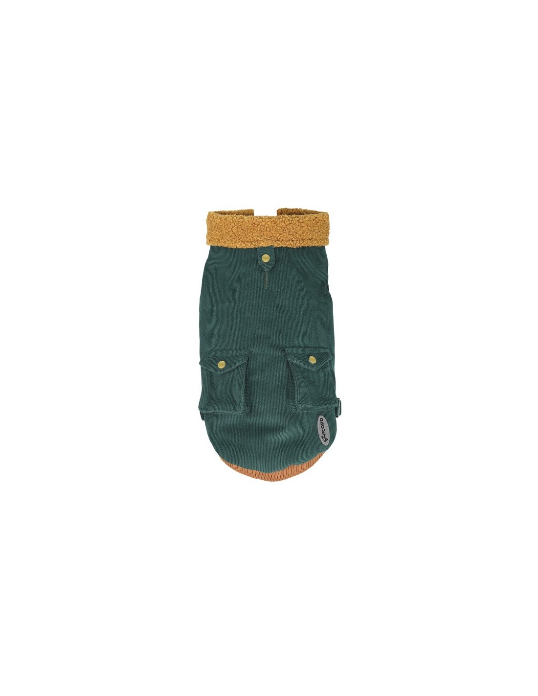 Heritage coat in soft ribbed velvet, with golden details. With leash hole, velcro fastening and back legs elastic bands. Can be combined with the accessories from the same line. Available in different sizes.