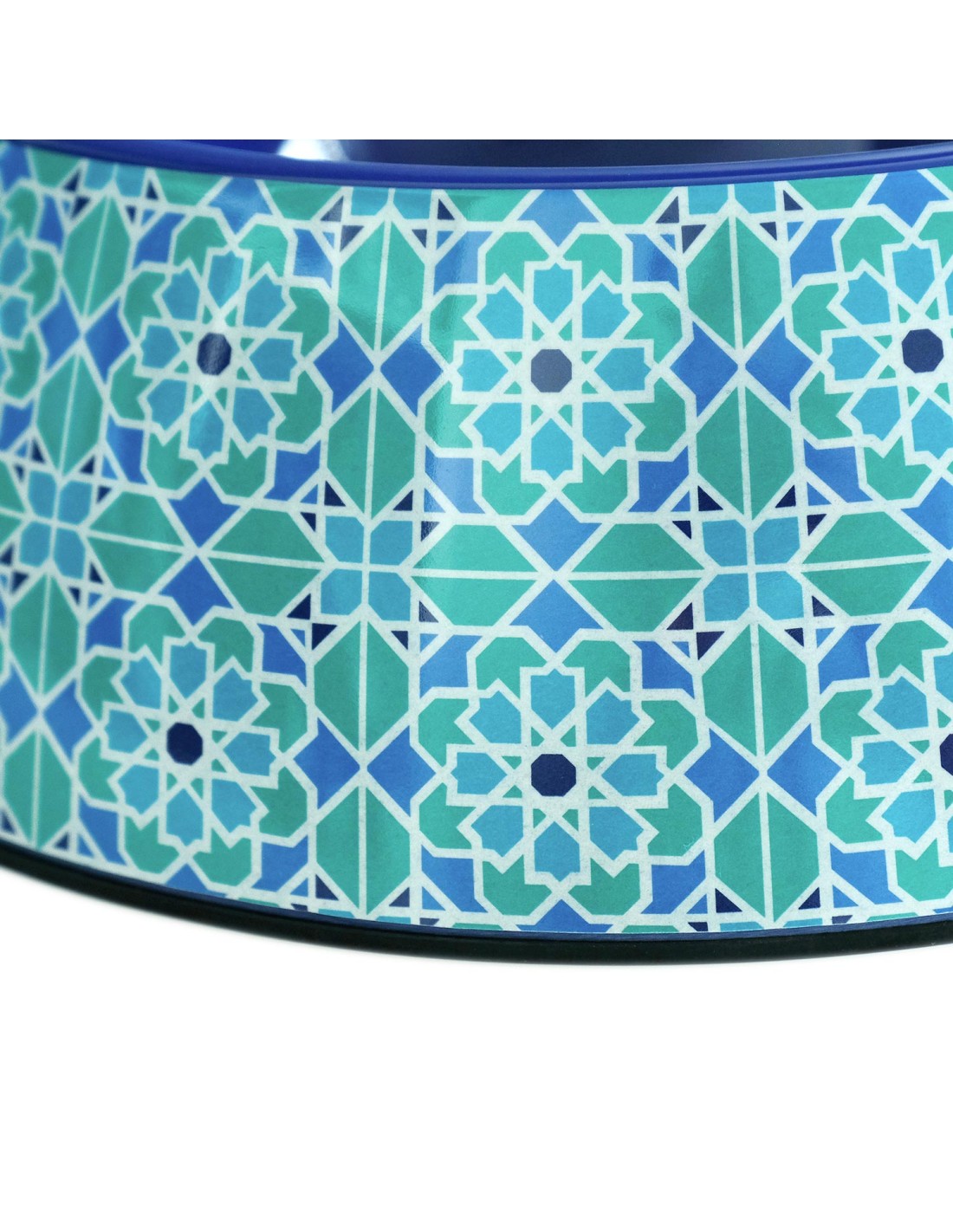 Mirage dog bowl, with geometric pattern in shades of blue and light blue, made of melamine, a solid and durable material. Safe in contact with food and water thanks to the absence of...