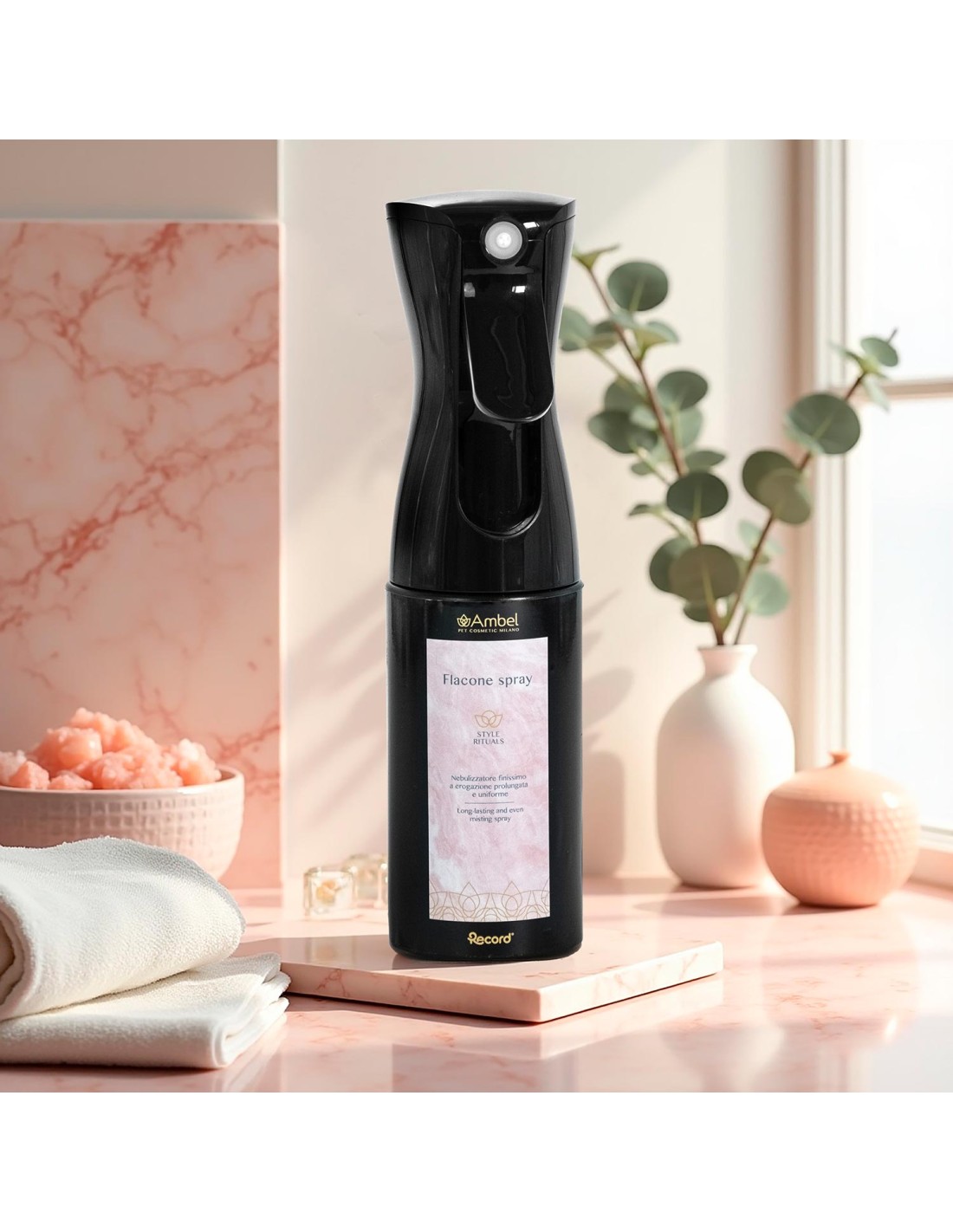 185 ml PET bottle with internal airless bag with very fine and continuous atomisation, 360° mode of use even with the bottle upside down. Compared to the traditional sprayer it is more ergonomic and fatigue-free and is suitable for very fine and continuous atomisation and micronisation of liquid conditioners. Ideal for refilling Revital, Kera up and Nutritive.