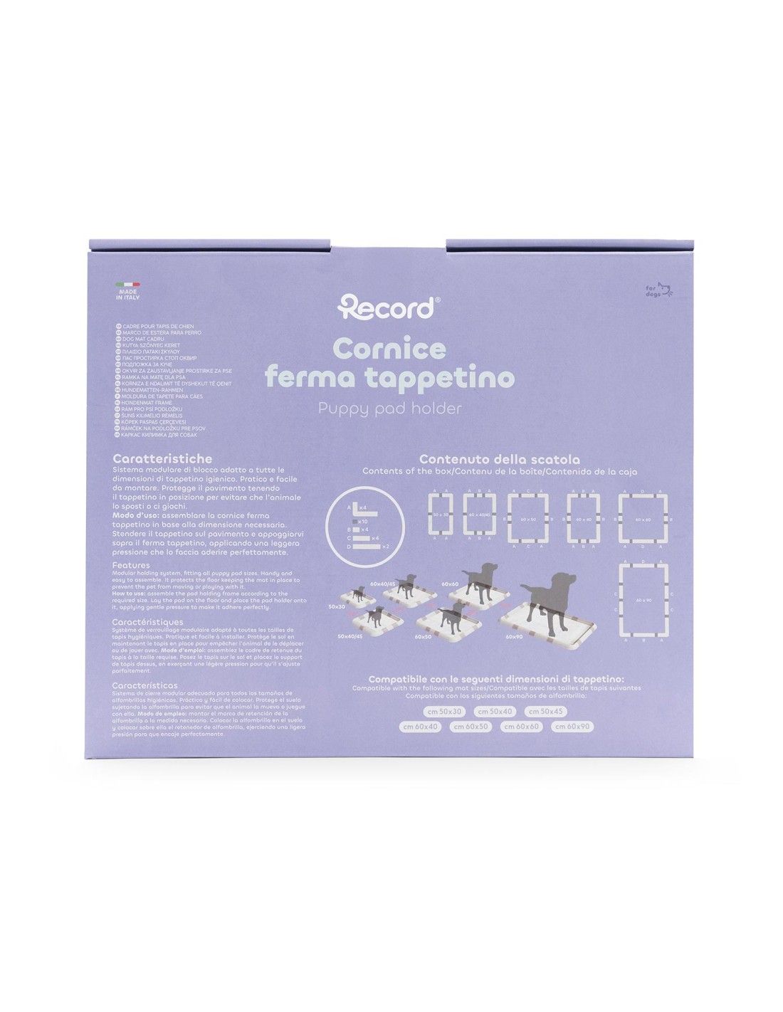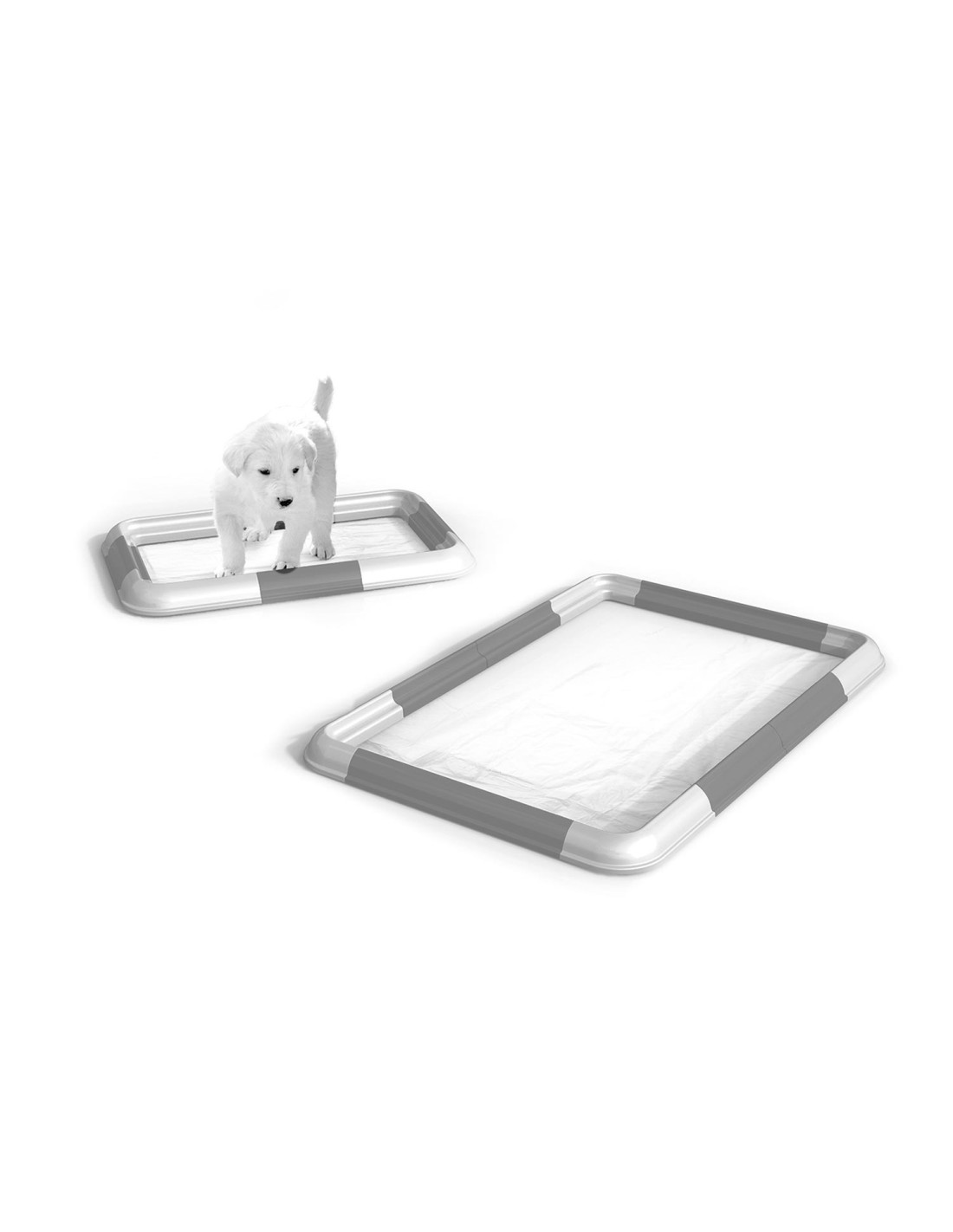 Puppy pads holder with a modular system that adapts to all mat sizes. Practical and easy to fit, it protects the floor by holding the mat in place, preventing the animal from moving or playing with it. Compatible with the following hygienic mat sizes: cm 50 x 30 | 50 x 40 | 50 x 45 | 60 x 50 | 60 x 60 | 60 x 90 |