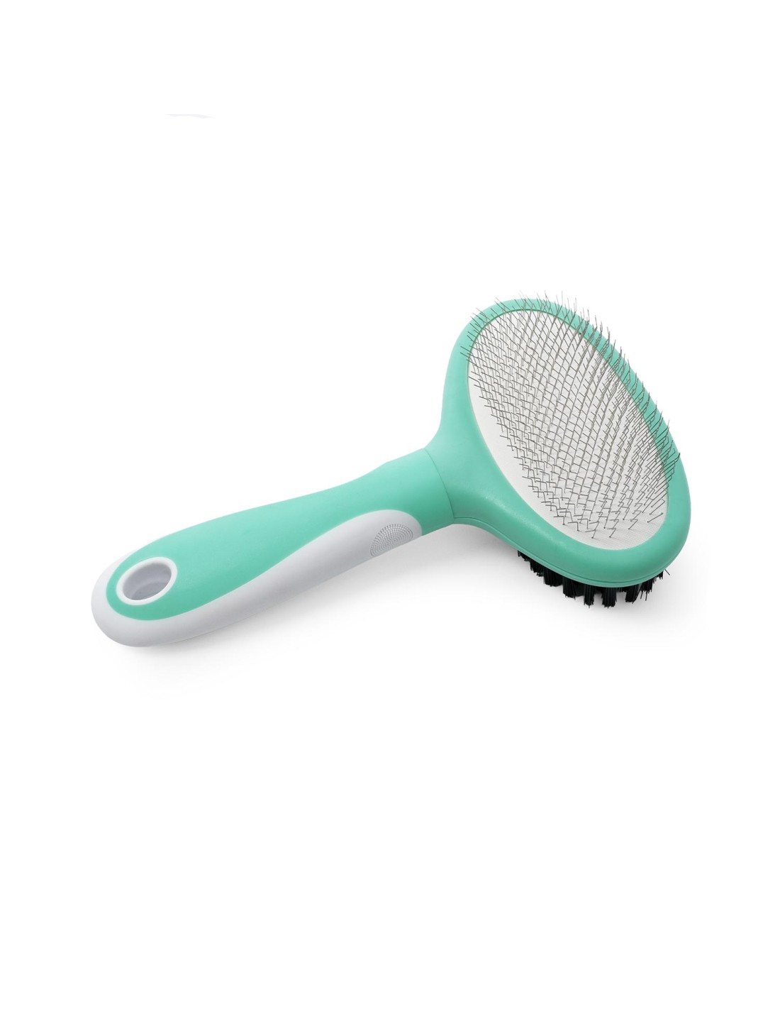 Double slicker brush with non-slip, ergonomic handle: the carder side untangles knots and cleans the coat in depth by removing dirt and dead hair, while the bristle side polishes and...