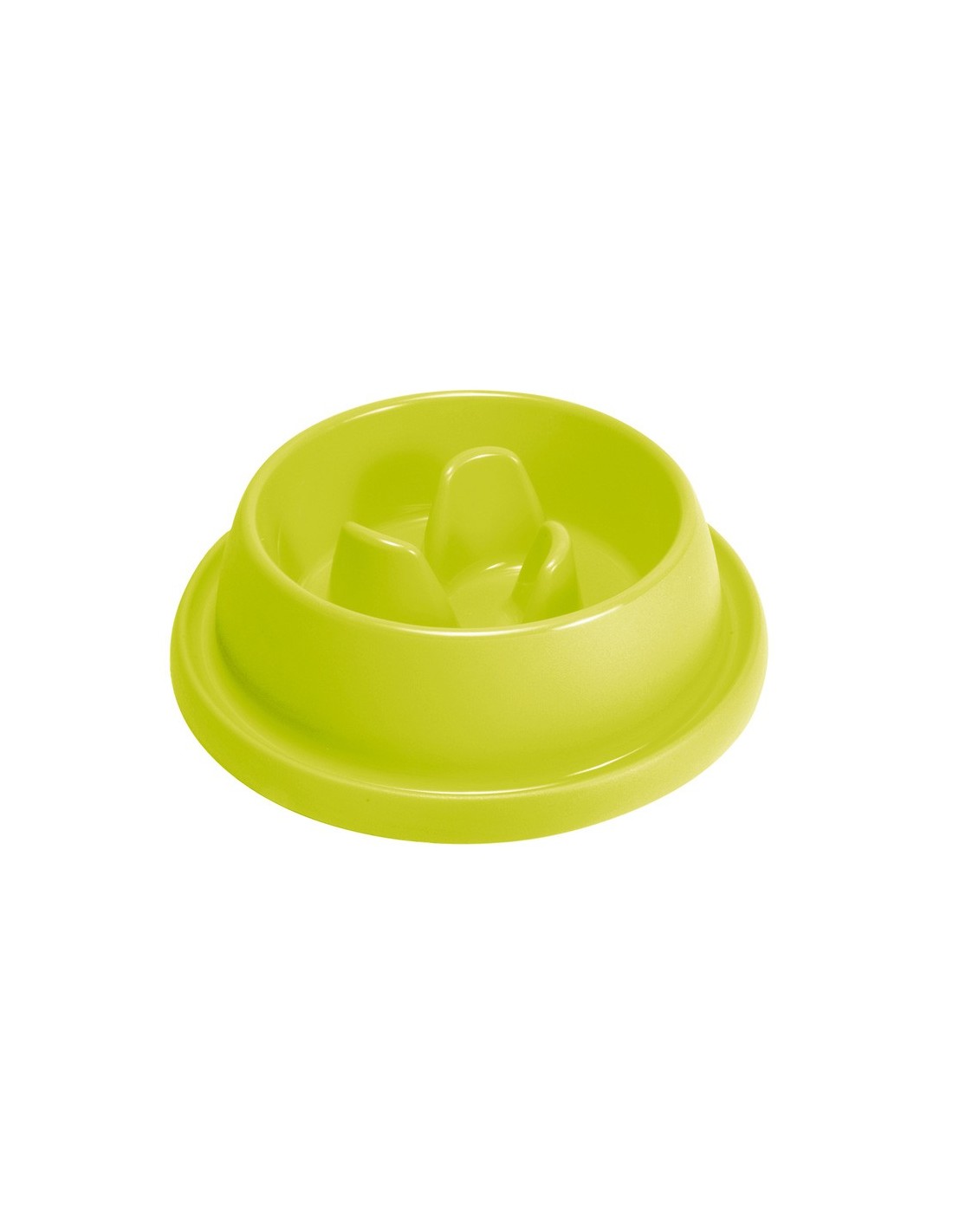 Ciotola per cani voraci in plastica con gommini antiscivolo e sistema anti formiche: la base della ciotola ha un bordo esterno riempibile con acqua che funziona da barriera per le formiche; Inoltre la ciotola è studiata per ridurre la velocità di ingerimento dell'alimento favorendo una corretta digestione del cane. Disponibile in diverse misure