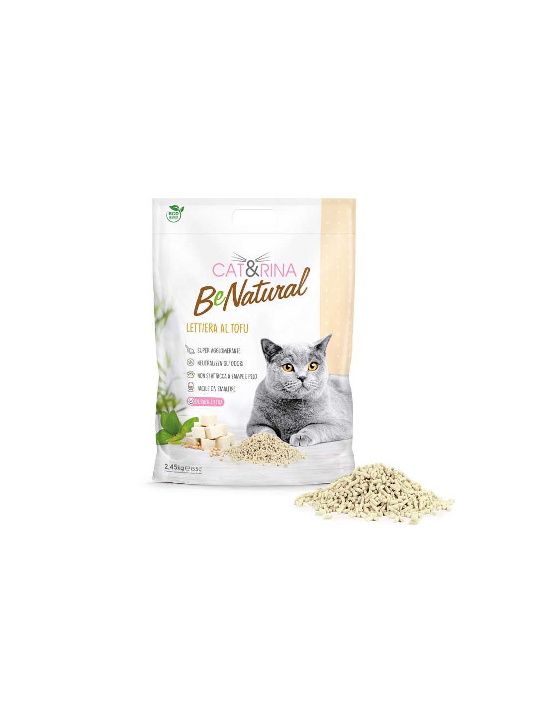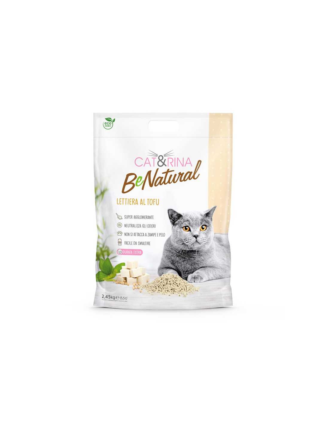 BeNatural al Tofu è l'innovativa lettiera per gatti interamente di origine vegetale: le fibre da cui è composta provengono dai residui della produzione alimentare, nello spirito del riciclo e della riduzione dei rifiuti. Leggera e facile da trasportare, trattiene perfettamente gli odori. Una volta utilizzata dal gatto, la presenza di un agglomerante naturale consente la formazione di una palla compatta che non si attacca alle zampette del gatto, facile da eliminare riducendo così lo spreco e favorendo il risparmio: un sacchetto da 5,5 litri durerà fino a 30 giorni. Grazie alla sua composizione di origine vegetale non emette polveri nocive e non contiene sassolini che potrebbero rovinare i pavimenti. Facile da smaltire nel contenitore dei rifiuti organici oppure direttamente nel Wc. Disponibile nelle profumazioni pesca, tè verde, con carbone attivo, classica e lavanda