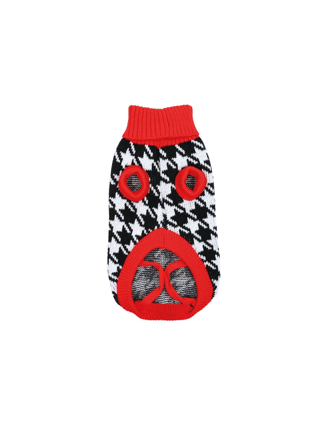 Maglioncino per cani Shopping, con collo alto dolcevita, con fantasia bianco-nera e dettagli rossi. Dotato di foro per il guinzaglio e passante in maglia per le zampe posteriori....
