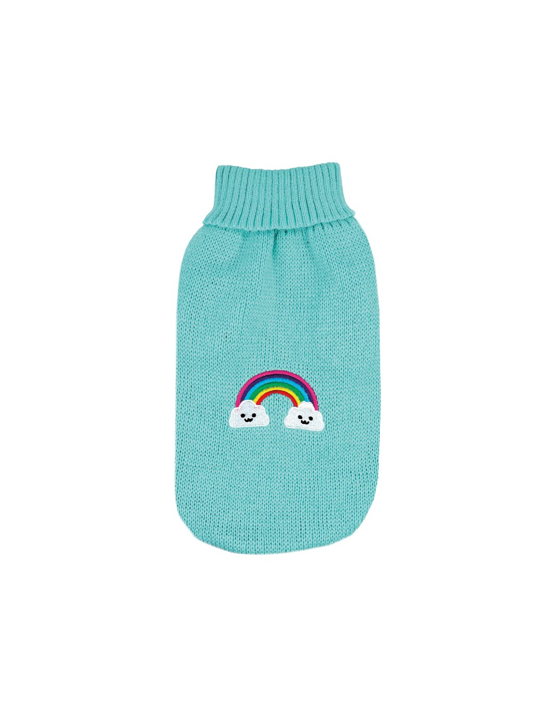 Maglioncino per cani del modello Magic Land, a collo alto, con ricamo a forma di arcobaleno o unicorno. Dotato di foro per il guinzaglio e passante in maglia per le zampe posteriori....